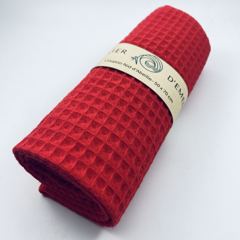 Le nid d'abeille est un tissu éponge 100 % coton en chaine et trame. C'est un tissu très absorbant grâce à sa forme alvéolée et gaufrée. Il résiste dans le temps et il garde son aspect neuf au fil des lavages, même fréquents. Nous vous conseillons un lavage doux en machine. Le séchage au sèche-linge est possible. Le repassage est déconseillé. Ce tissu transversal conviendra parfaitement pour la confection de linge de maison ou de salle de bain, mais aussi pour des vêtements ou de l'ameublement.